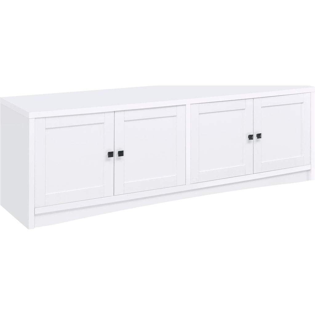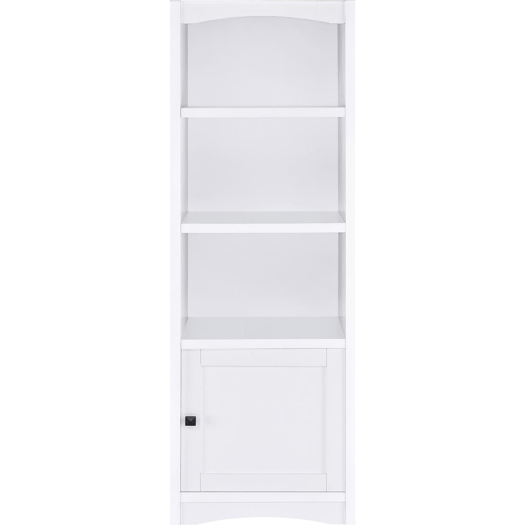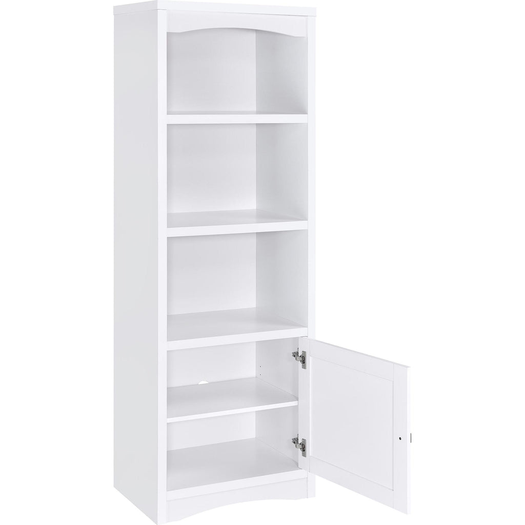 • Media towers feature three open shelves and a one-door cabinet with adjustable shelving