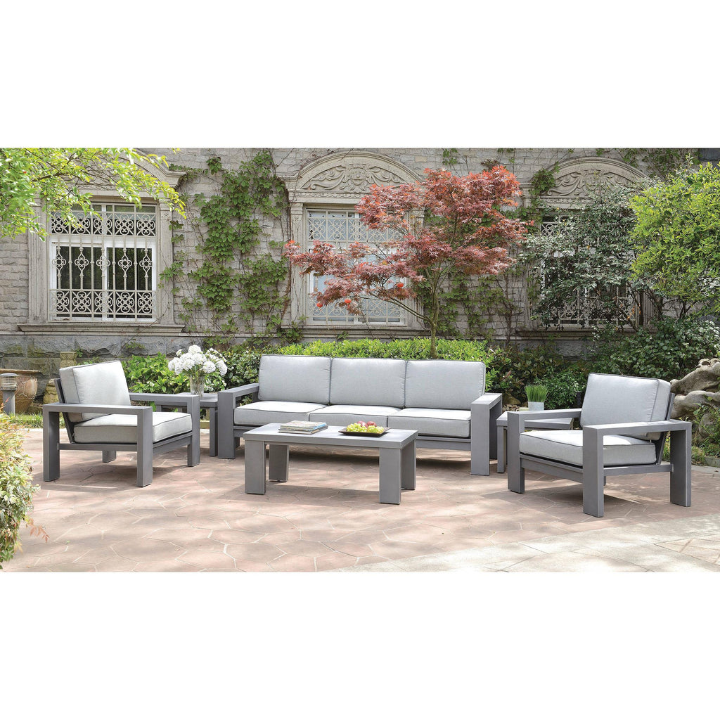 • Gray fabric cushions