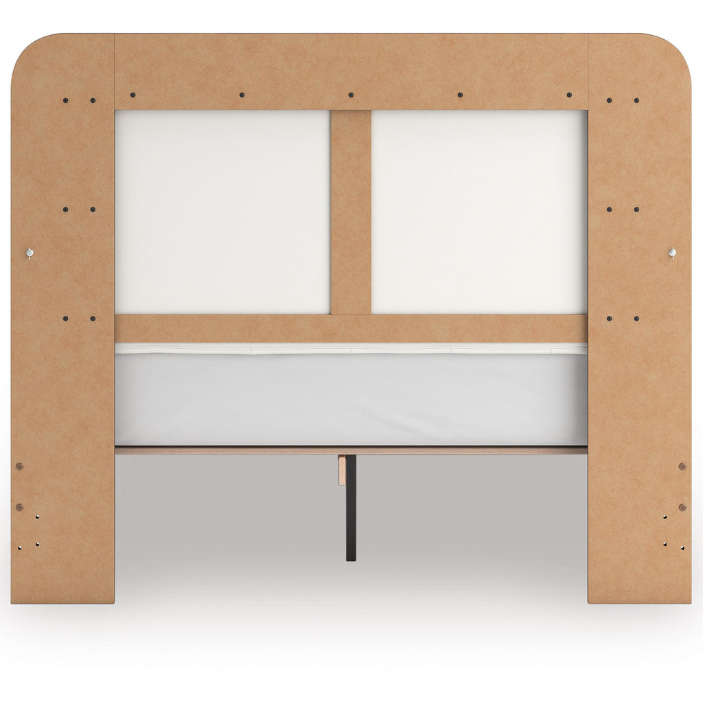 • Includes upholstered headboard, footboard, platform rails and roll slats