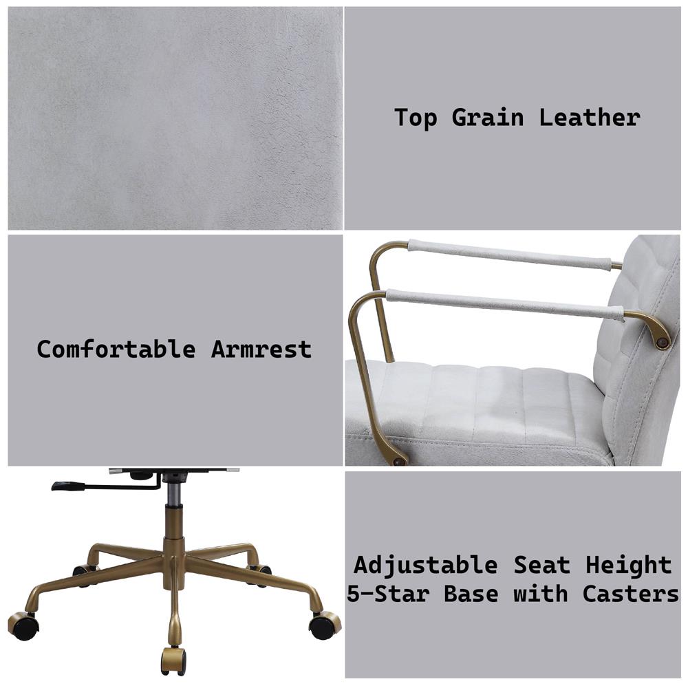 Swivel Office Chair(360 Degree) Adjustable Seat Height Wheels Included5-Star Base with CastersTop Grain LeatherUpholstered Seat and Back Cushion