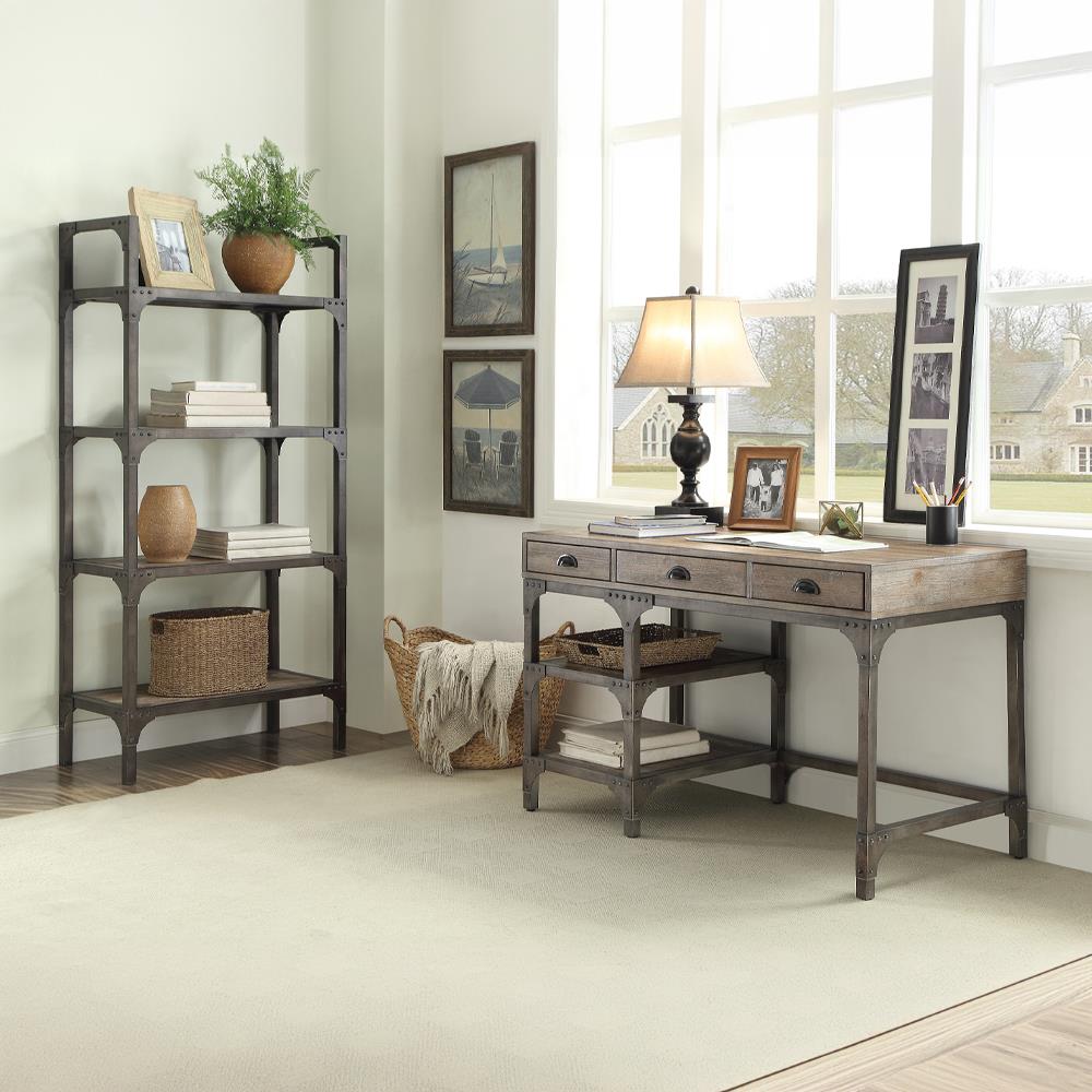 • Wooden Top/Shelves/Drawer: Weathered Oak Finish (No Apron), Shelf Dimension: 14" x 21" x 0.6"