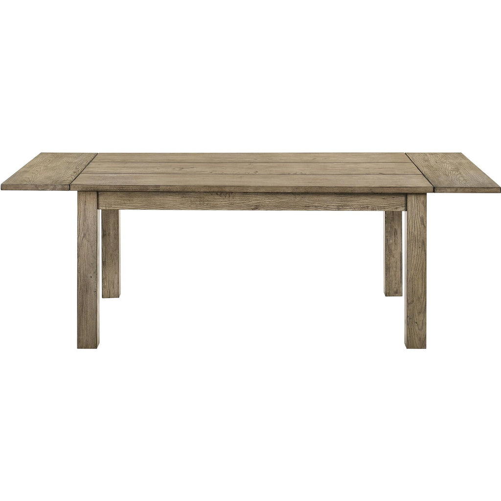 • Two 12-inch draw leaf extensions glide out from each end of the table