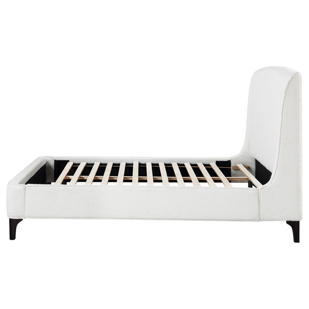 • Gentle curved headboard and thick sides are padded with trendy grey chunky boucle fabric