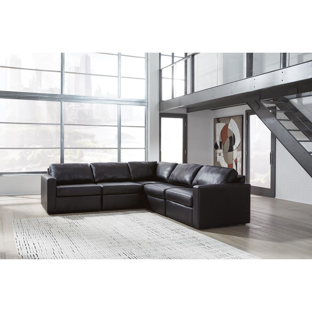 • Includes 5 modular pieces: left-arm facing corner chair, wedge, 2 armless chairs and right-arm facing corner chair